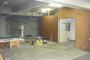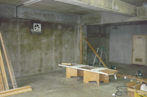 このコンクリートむき出しの部分に仕切壁などを作って仕上げる工事です。今回のお施主様は法人様で、これから現在ある自社ビルを解体されて新しいビルを建てられます