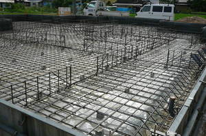 アミの目状に組まれた鉄筋が職人さんの苦労を物語ってるような気がします![]()