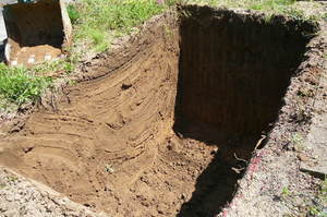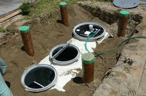 まずは浄化槽が入るサイズの穴を掘り深さや高さを確認します