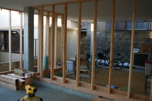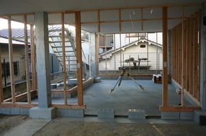 基礎工事を終えて内装の間仕切工事に入ったS様邸![]()