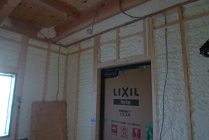 現場吹付断熱も無事に終了したようです![]()