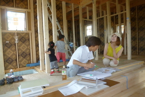 この日外は猛暑でとても暑かったですが、建築中の室内なとても涼しかったです![]()