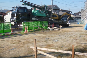 まずは地盤改良工事に向けて資材、機械の搬入です![]()