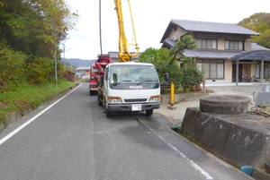 まずはいつものようにコンクリート圧送用のポンプ車を設置![]()