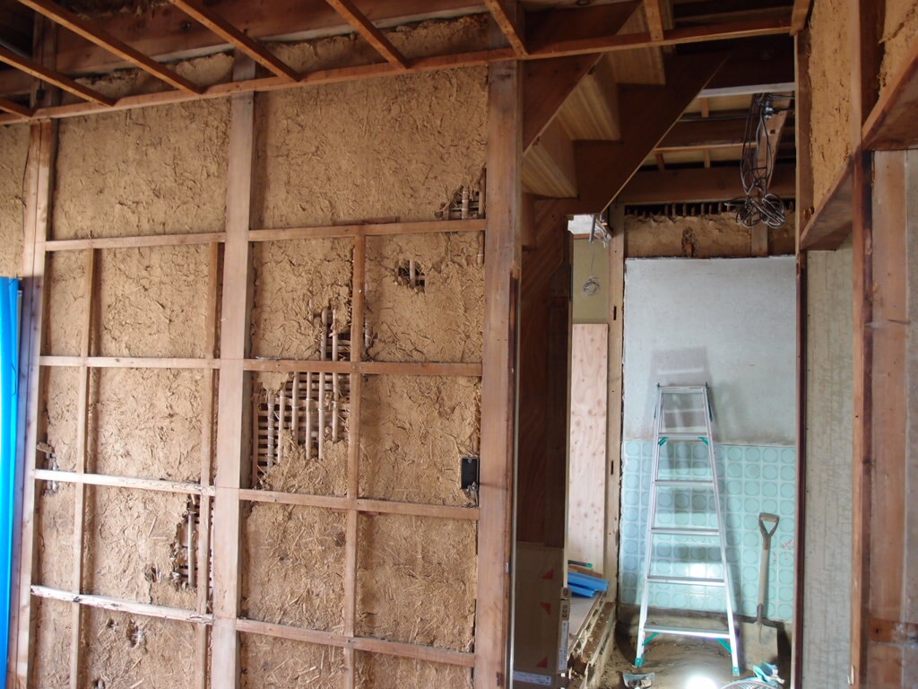 キッチンを壁付けから対面に変更するため、壁の撤去も行いました。