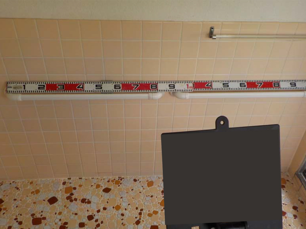 浴室に入り、向かって右側と正面の2箇所に手すりを設置します。
