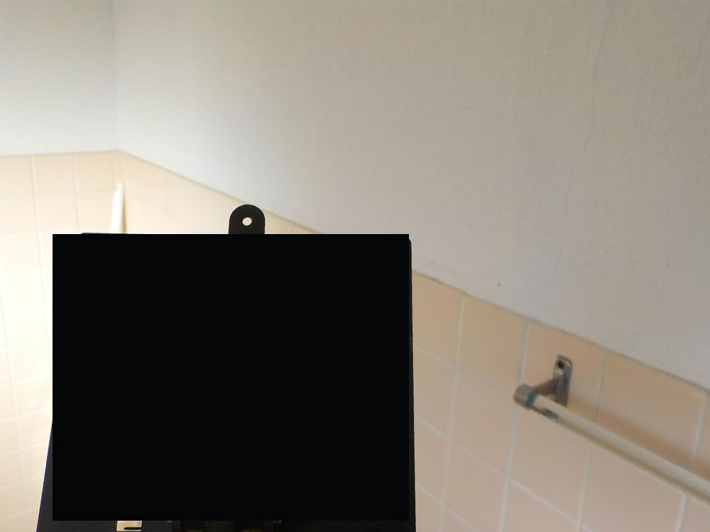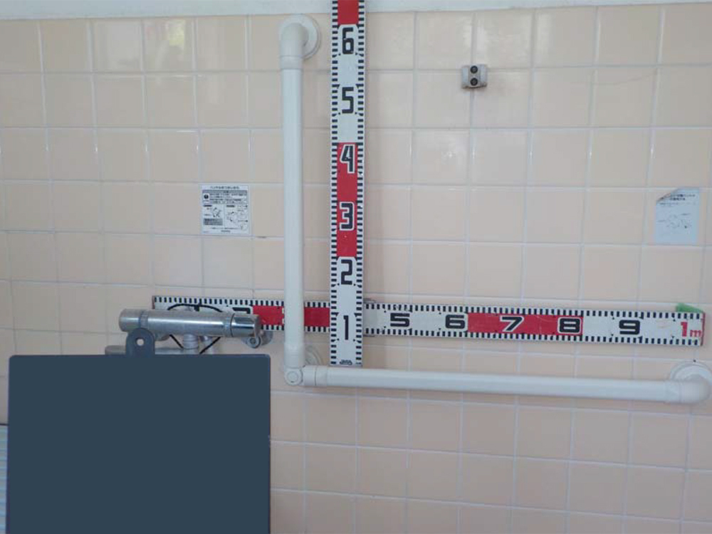 浴室に入り、向かって右側と正面の2箇所に手すりを設置します。