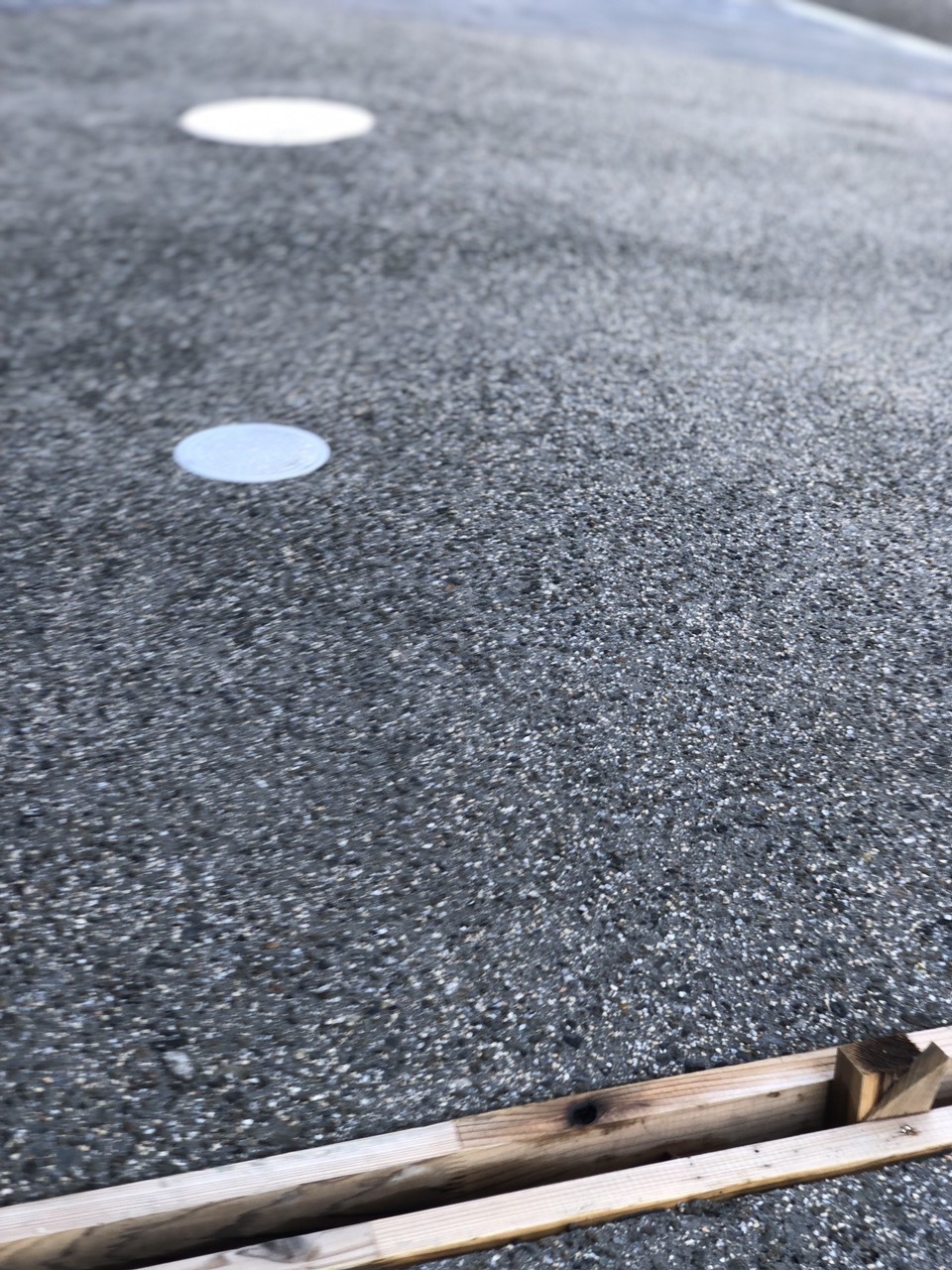 表面の砂利により、均したコンクリートと比べ車やバイクのタイヤ痕が目立ちません。