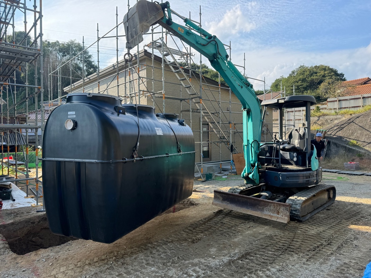 今回は大きな浄化槽のため、いつも以上の装備で工事にのぞみました。