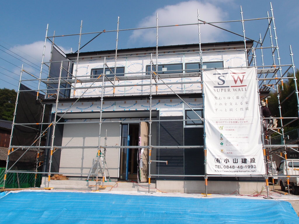 尾道市:同じ敷地内の二階建てと平屋の2棟が間もなく完成 SW工法の家