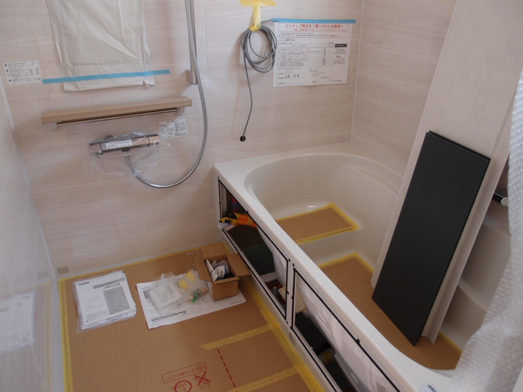 淡い木目調の壁パネルで清潔感のある浴室になりました。