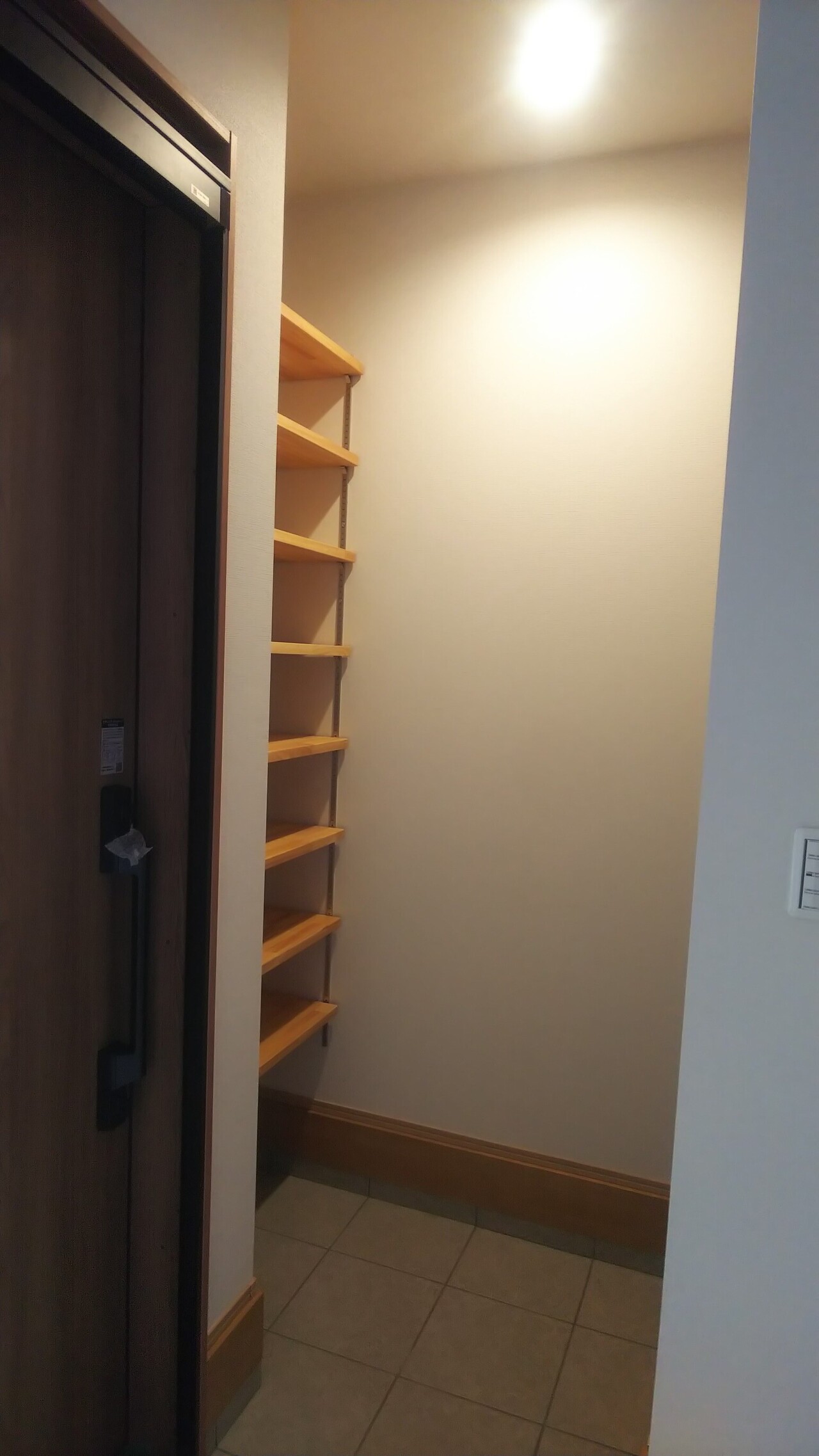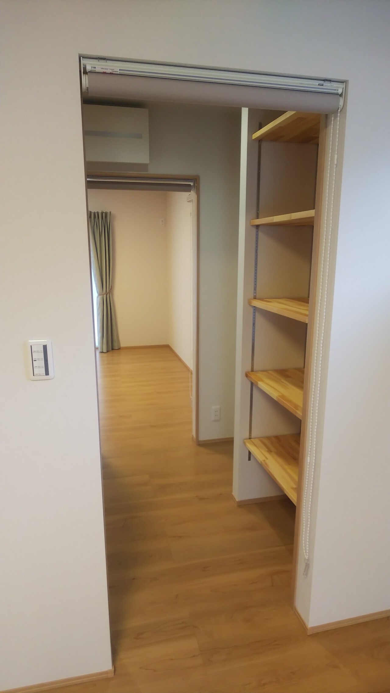 洋服や小物などを収納しやすいようにハンガーパイプや棚を取り付けています。