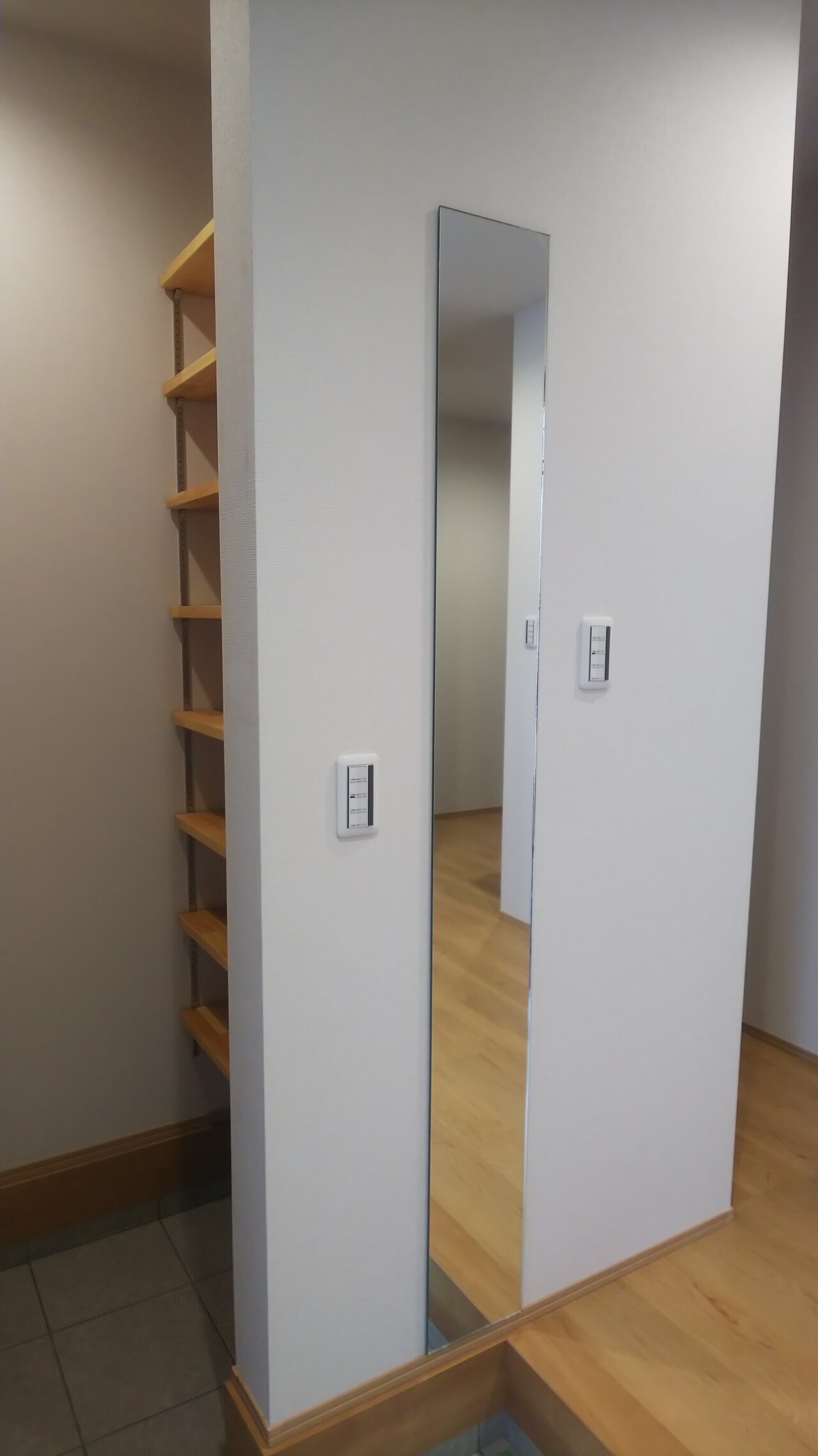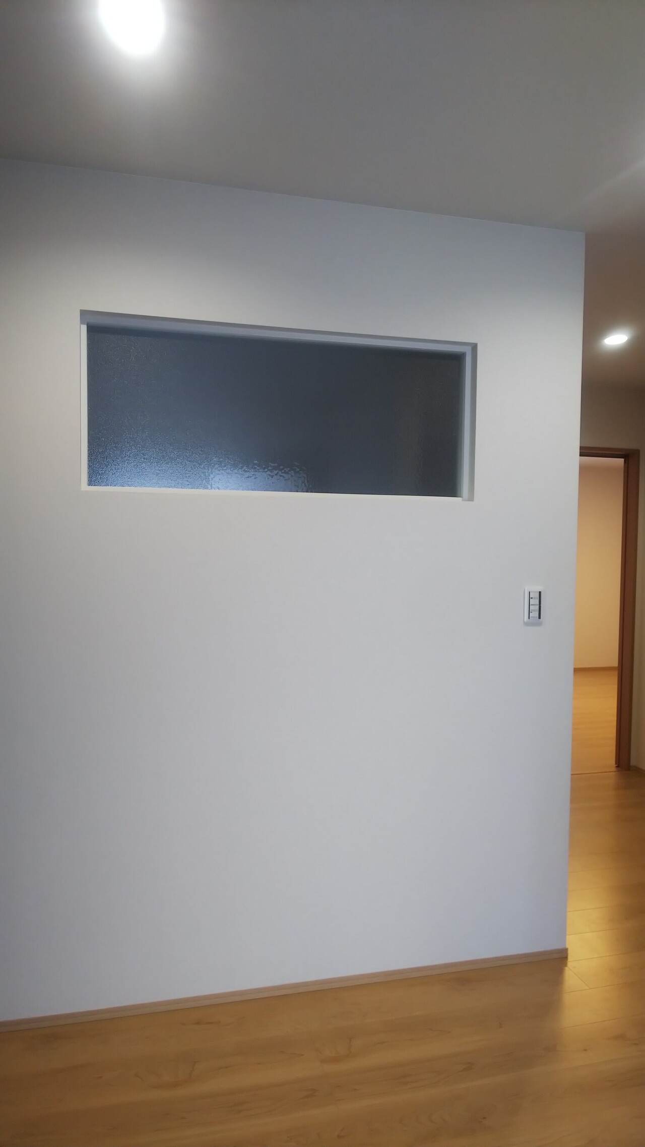 玄関入って正面の壁には明り取りの窓を取り付けました。