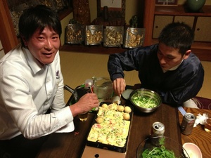 今回のメニューは、もつ鍋とハリハリ鍋。そしてたこ焼きです