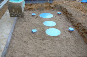 その後浄化槽の底部の鉄筋を組みコンクリートを流します。