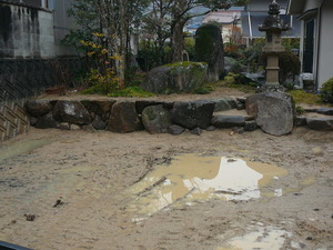 現在駐車場工事中の現場で、新しい駐車場との境に石を積みました