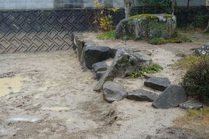 現在駐車場工事中の現場で、新しい駐車場との境に石を積みました