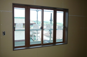 寝室の連想窓(LIXILシンフォニー) 当初の計画では普通の引違いサッシでしたが、僕の独断で通風性、デザイン性に優れた窓に変えてみました