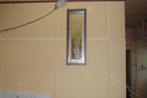 玄関正面に奥様のお気にいりそうなステンド硝子の装飾を施してみました これは大変喜んでくださいましたよ 収納内部のバリエーションもお施主様の要望を最大限叶えました