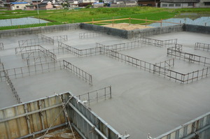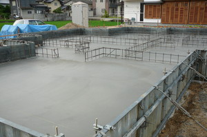 さて現在、上棟に向けて基礎工事中のF様邸で土間のコンクリートを打設しました![]()