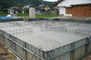 さて現在、上棟に向けて基礎工事中のF様邸で土間のコンクリートを打設しました![]()