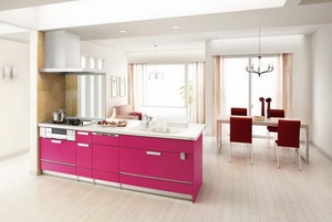 熊本で新築工事中のお友達のお宅のキッチンもピンクになりそうです![]()