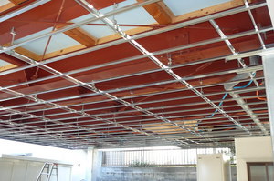 まずは軽鉄の下地材料を組み合わせて、天井の下地を組んでいきます