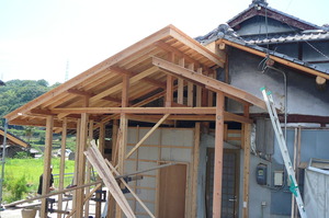 さて現在増築工事中の尾道市M様邸 屋根の下地工事もほぼ終わりました