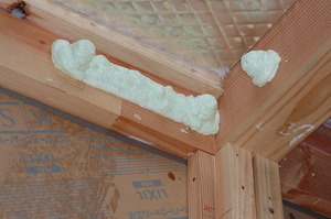 外周部のボルト及びボルト貫通部などは熱が逃げやすく断熱性が損なわれるので、ウレタンを充填して断熱を確保します![]()