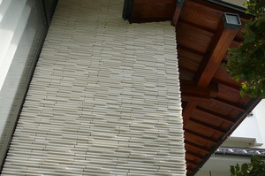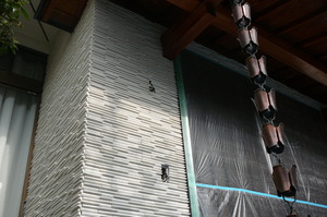 化粧玄関庇の工事も終わり、次は外装のタイル工事です