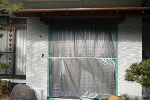 化粧玄関庇の工事も終わり、次は外装のタイル工事です
