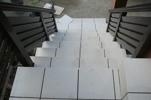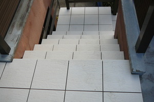 外部の鉄骨階段にモルタル仕上げという状態で、長年のコケがたまってましたが