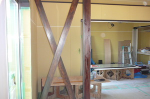 リビングにある化粧筋違も同じ色で完成です![]()