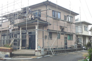 気合を入れて、まずは安全第一の足場工事を施工しました![]()