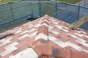 大屋根は雨が降るまでには終わりそうです 棟の役物を取り付けたら完成です