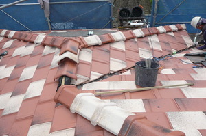 大屋根は雨が降るまでには終わりそうです 棟の役物を取り付けたら完成です