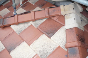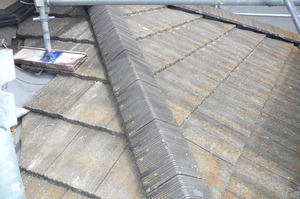 まずは古い瓦を撤去します 大屋根と同じですね    そして下地処理後、新しい瓦を葺いていきます