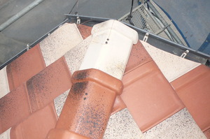 まずは古い瓦を撤去します 大屋根と同じですね    そして下地処理後、新しい瓦を葺いていきます