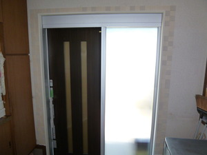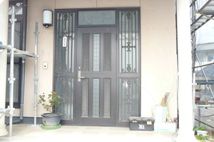 外壁の塗装工事前に玄関サッシの入れ替えです![]()