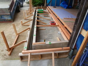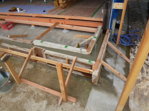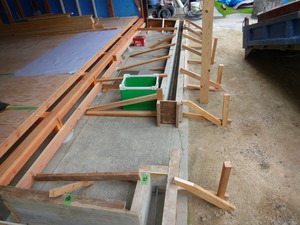 ということで急遽工法を変更し、型枠組を行いコンクリート基礎にすることにしました![]()