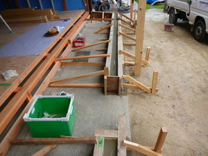 ということで急遽工法を変更し、型枠組を行いコンクリート基礎にすることにしました![]()