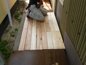 給水工事のついでに、通路の段差を解消するデッキ工事も行いました![]()