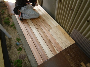 給水工事のついでに、通路の段差を解消するデッキ工事も行いました![]()