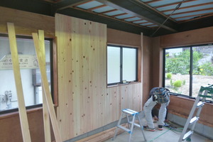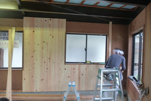 うちのさすがに台風の日はどこにも行けず、急遽会社1階駐車場の内壁を新しく張りかえる事にしました