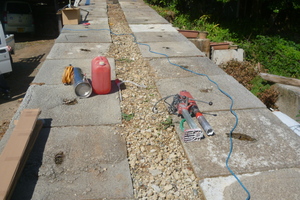 既存のコンクリートブロックにダイヤモンドコアという特殊な機械で穴をあけていきます![]()