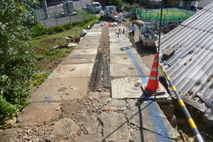 以前よりお話があり、既存のコンクリートブロックを積み重ねたでこぼこのスロープを何とか綺麗に、危なくないようにしてほしいとのお客様のご要望を叶えるべくいざ着手です![]()