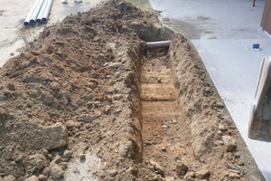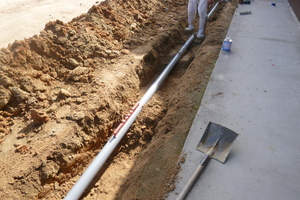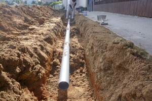 勾配を見ながら新しい塩ビ管を埋設していきます