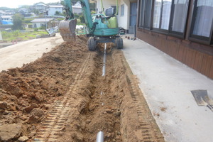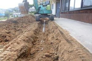 まずは相棒のショベルを使い新しい配管ルートの掘削りです![]()