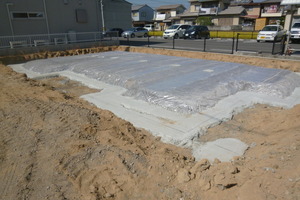 丁度、掘削り工事 土間シート張り 均しコンクリート工事が終ったとこですね![]()