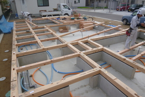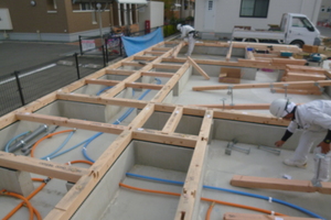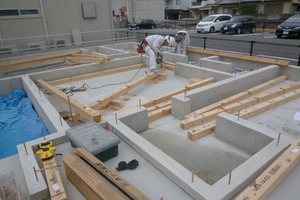 そしてボルトの穴あけ作業をして基礎に取付ていきます